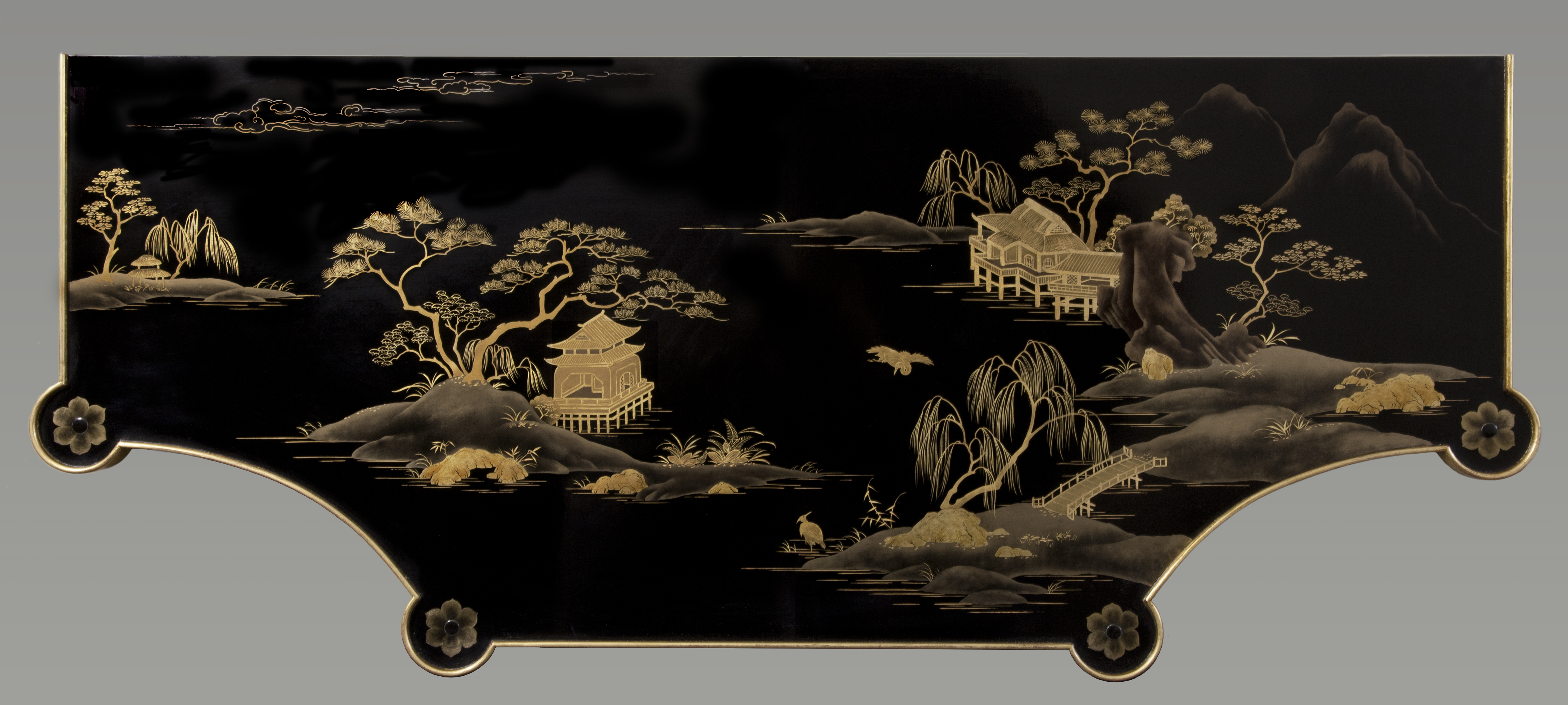 This image is actually a photo of a set of panels, created in the same way as the white panels shown above. The panels were “assembled” in Photoshop to display the entire design without interruption. The individual panels were ultimately installed on walls within gilded moldings.