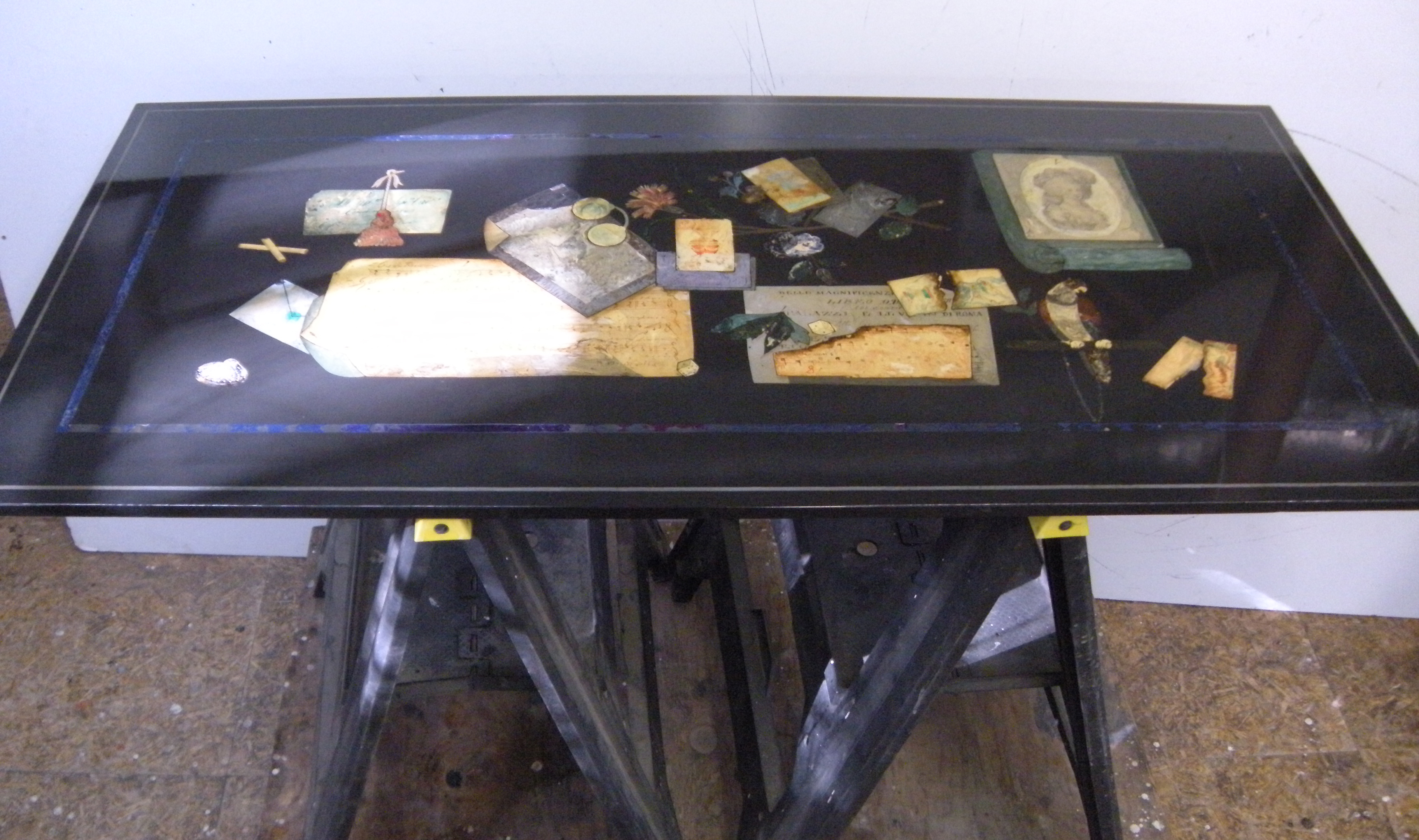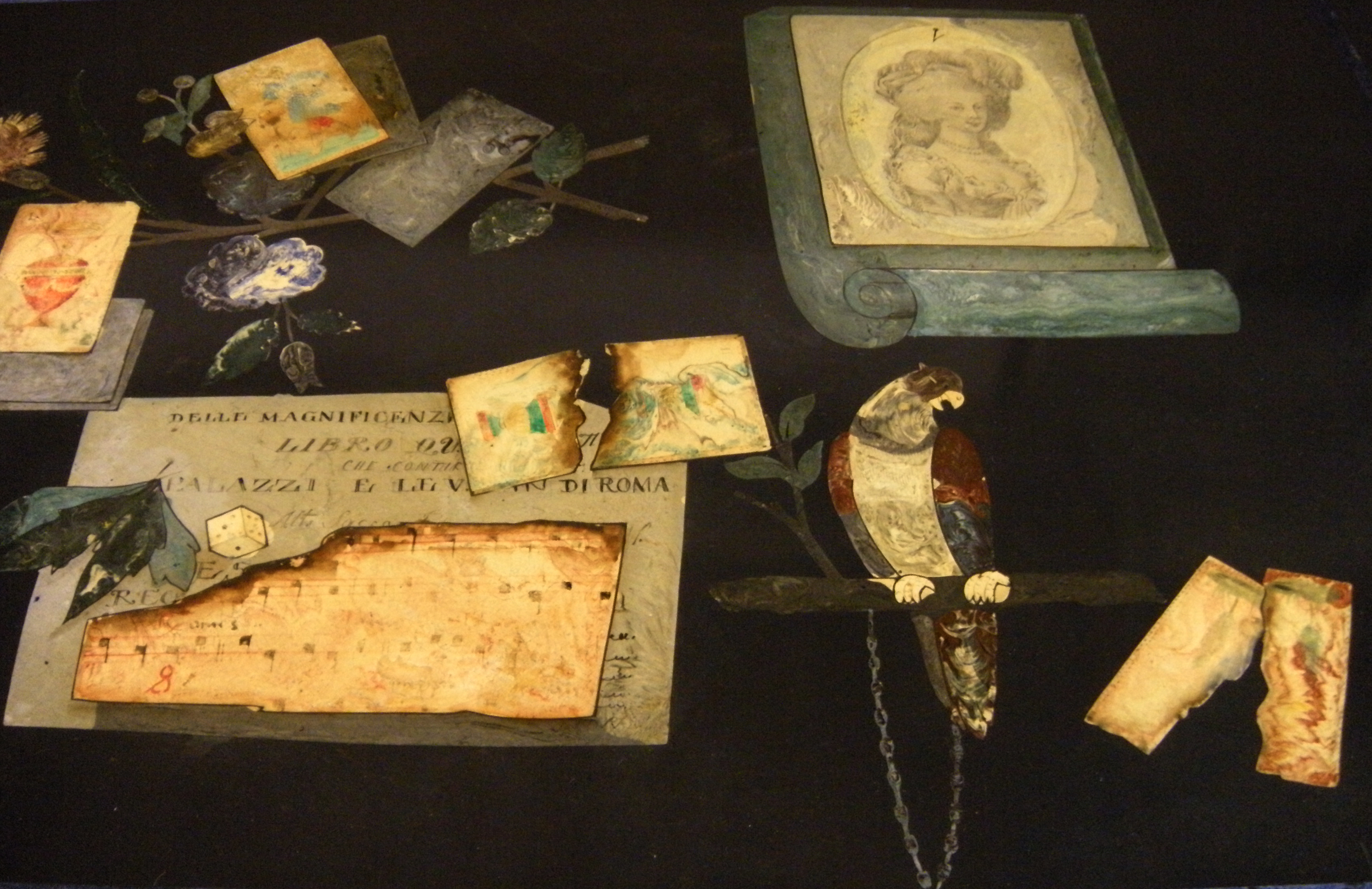 The photo above shows an English papier mâché tray after restoration. It had arrived in my studio with a damaged corner, and a few small pieces, all that remained of the original breakage.
